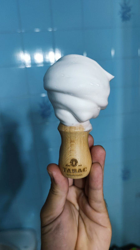 Espuma del afeitado que ha caído esta tarde.Cortesía del jabón @Joserra63 edición Bruji @Secaro que tiene un aroma fabuloso y muy fresco para estos calores: