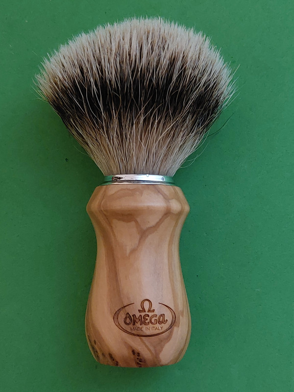 Sirva como presentación oficial de esta magnífica brocha Omega, un mango precioso y ergonómico, nudo silverstip de 24/55 suave pero firme.