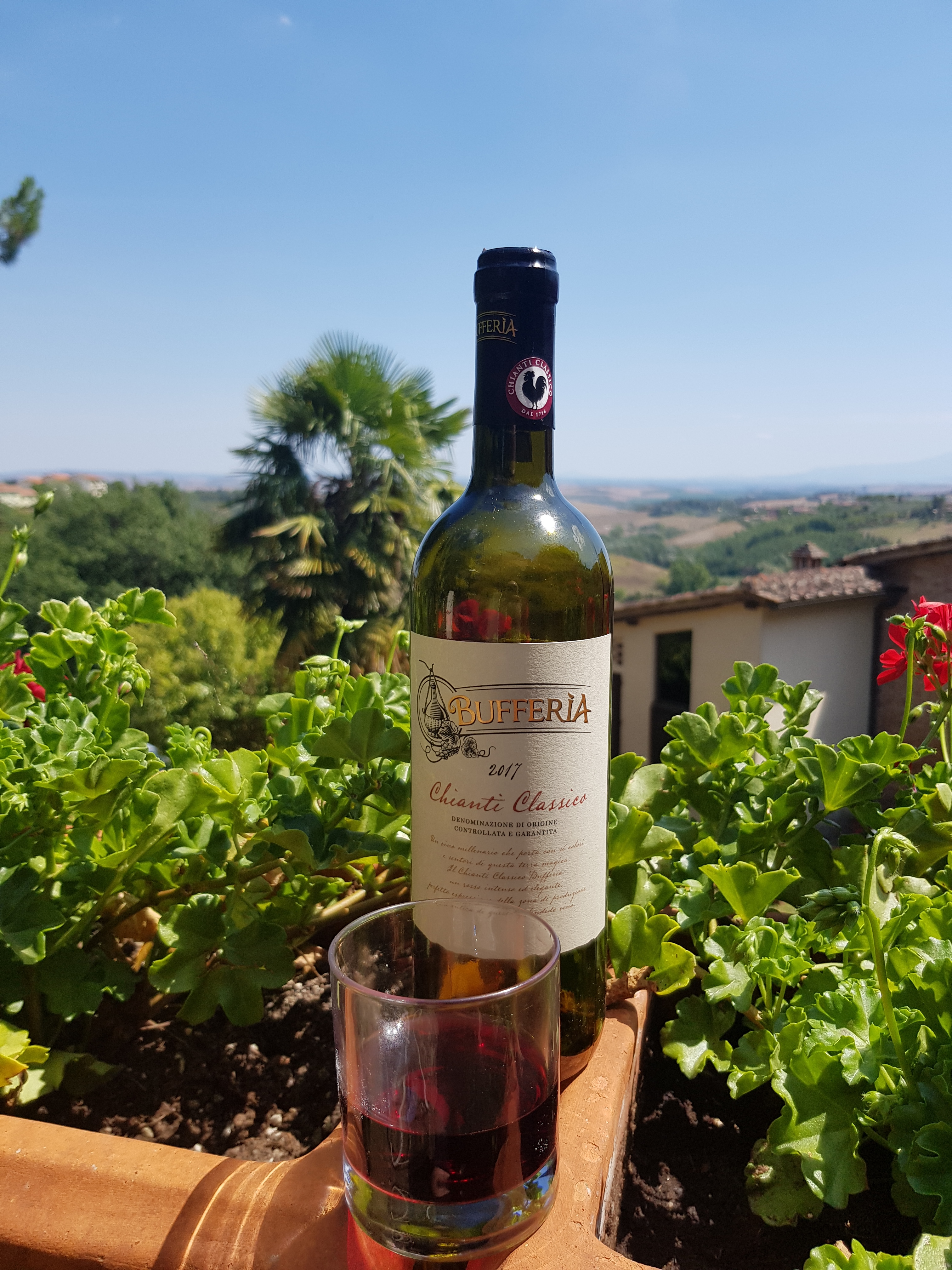 Hoy en Siena,disfrutando en la terraza del hotel bajo el sol de La Toscana de un Chianti classico