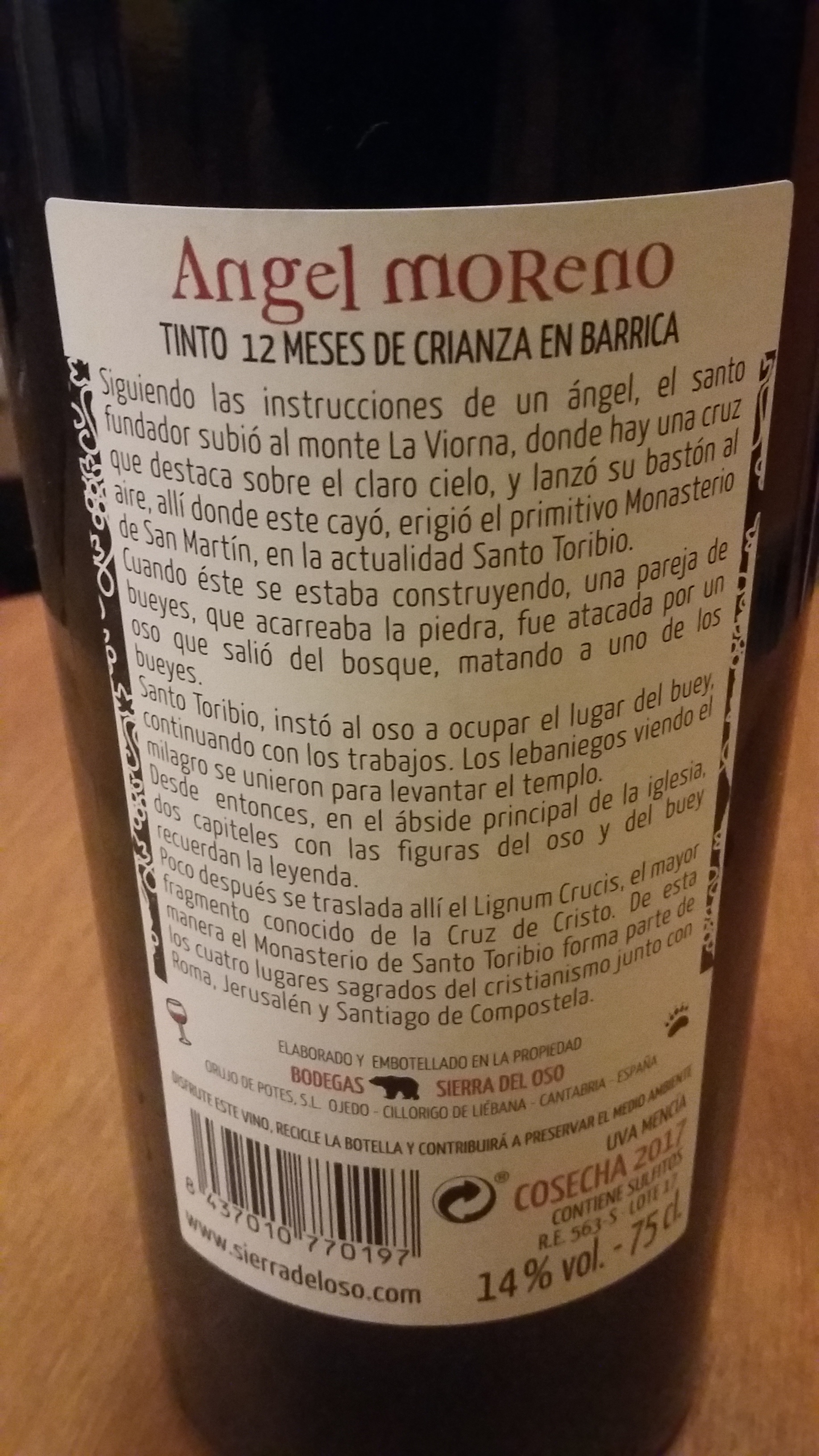 Vino de Liébana. Bodega muy famosa aquí por sus orujos. Muy rústico, la barrica ni se aprecia. Está bueno.