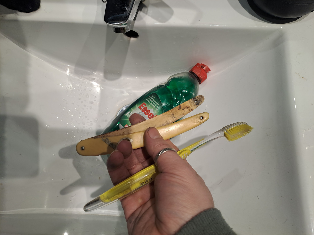 Esta VOLCAN ha vivido mucho, la hoja está muy gastada, las cachas cambiadas de forma muy brusca, óxido… compañero @Lampardi esta es para ti, pero antes hay hacerle una buena limpieza, y aprovecho para compartir el proceso.