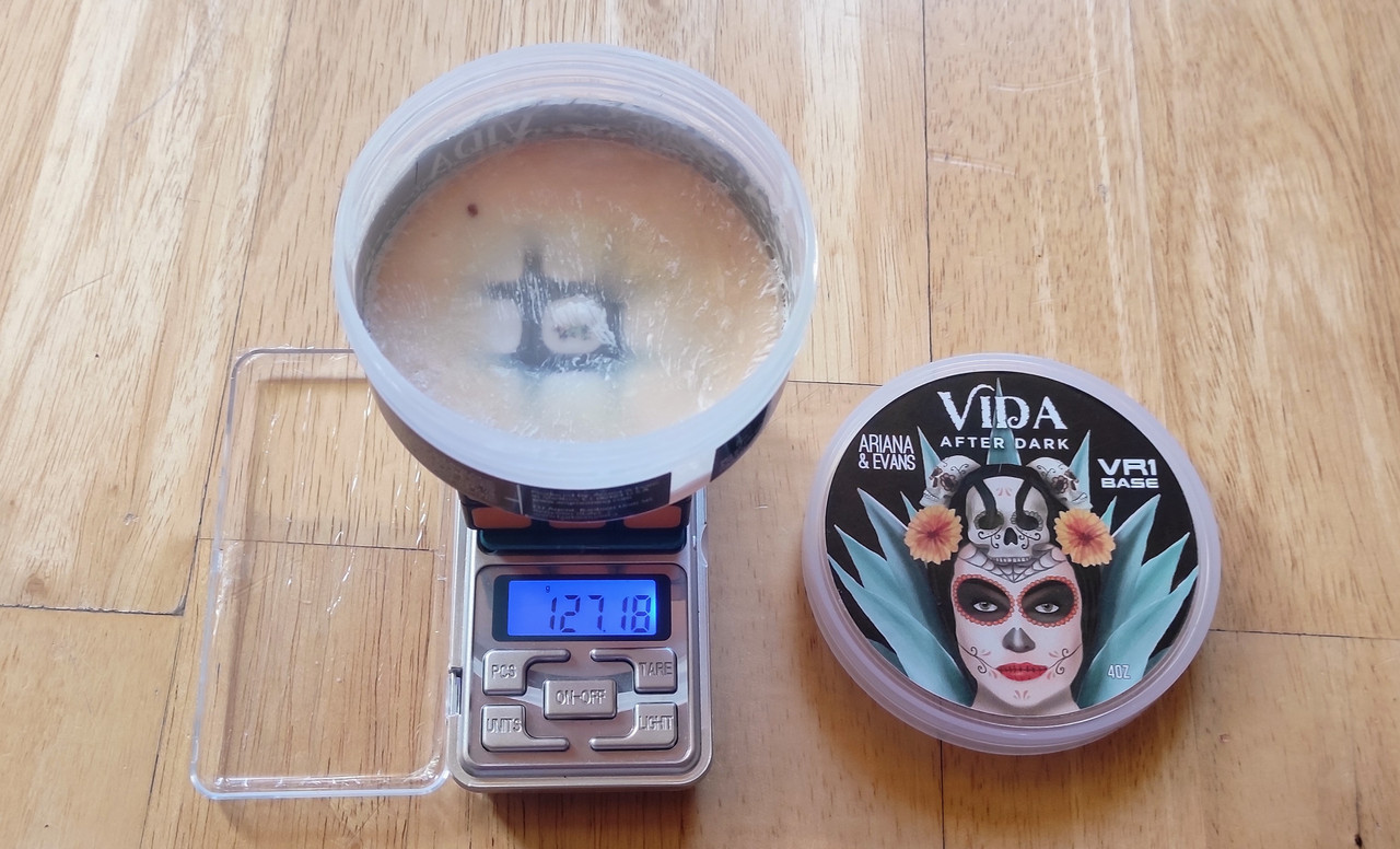Arroja 127gr. Hay que descontarle 75gr del cubo, por lo tanto, recipiente incluido, estaríamos en 52 gr. Todo esto aproximado, claro. A ello ahora habría que restarle lo que sea que pese el recipiente sin la tapa. Dicha información la desconozco. En el hilo sobre pesos de los recipientes no veo que haya referencia a uno de A&E.