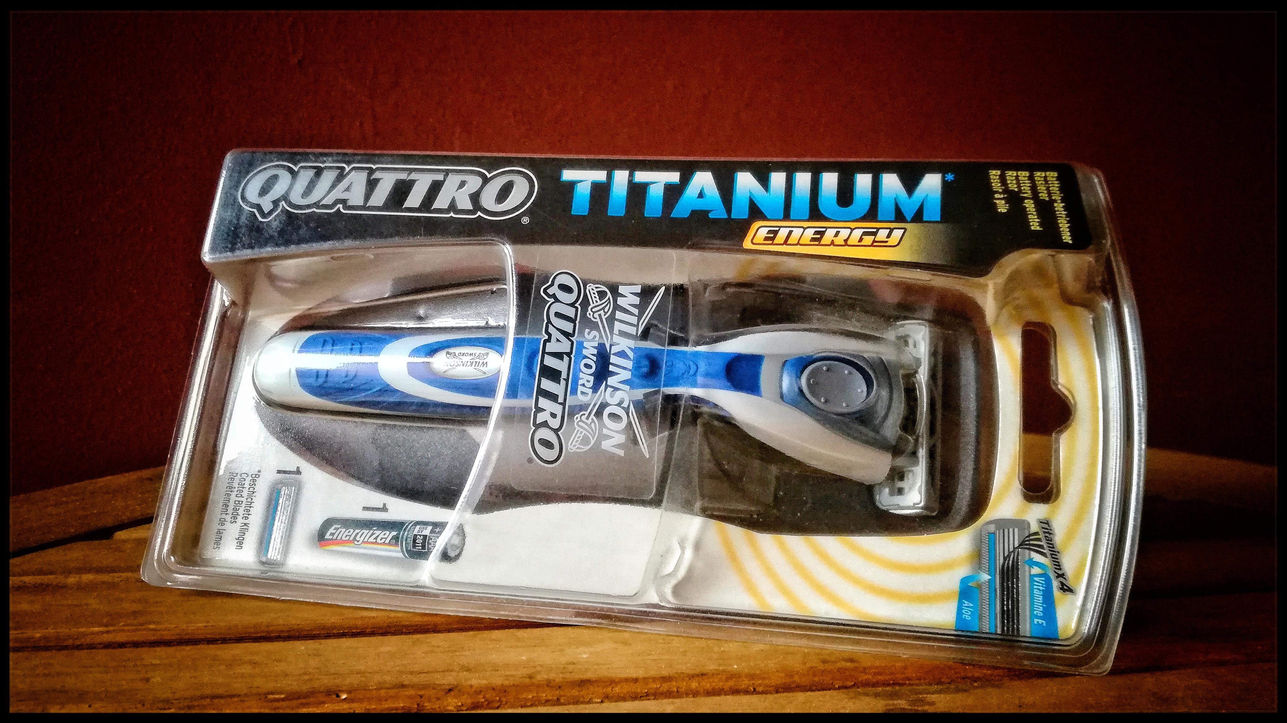 Pues desde aquí, dar las gracias por la inestimable gestión de mi buen amigo Manuel @manumontevideo, alias Branquias, puedo disfrutar de esta ya extinta y rara Wilkinson Quattro Titanium Energy !!!