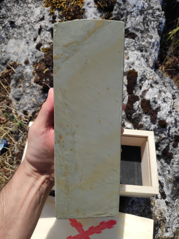 It’s a shame to sell such beautiful stones. Besides, this is a marbled one, top quality, shipped from the United States (Darcy Variava). This monster measures 23.5 cm long, 7.5/8 cm wide, and over 4 cm high, which gave it a weight of 2.5 cm on the scale, if I recall. I hope your customer leaves comments about this marvel here.