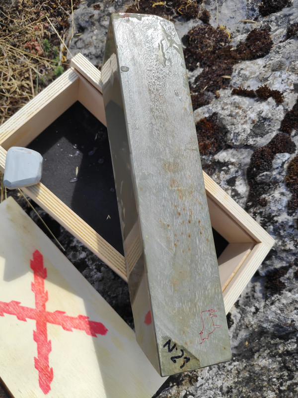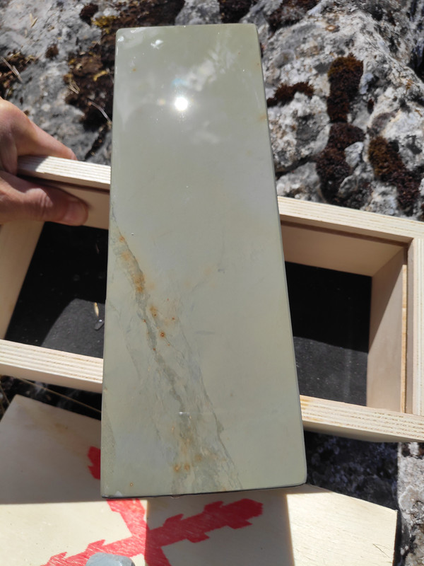 Piedra número 21, para ser más exactos. Cuesta despedirse de piedras tan bonitas. Este monstruo marmoleado media 23 de largo 7,5/8 de ancho y unos 4 cm de alto dando un peso en la báscula de 2,5 kg.