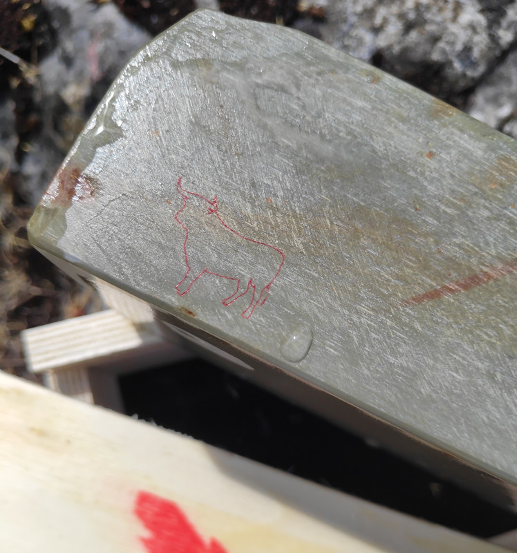 Ha ido rumbo EEUU, Juan Carlos ha saltado el charco. Sepan que ese toro sólo la llevan las piedras de más alta calidad, las marmoleadas, ese fino polvo de cuarcita que refleja el sol y debe* dar unos acabados de miedo.