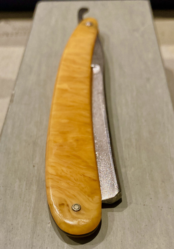 No sé que tal irá, mi segundo afilado. En el cuero la diferencia de sonido era bastante notable frente a la Filarmónica. Esta china se nota bastante más sólida, más dura y suena más grave. La Filarmónica suena a acero bueno, casi como una copa de cristal, y se ve más y mejor vaciada. Luego las compararemos las dos. Supongo que ambas afeitarán pero las sensaciones serán muy diferentes.