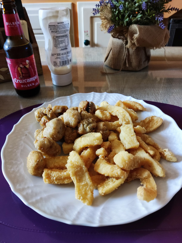Oreja de cerdo cocida en casa y pasada por el horno 20 minutos a 200 grados. La salsa brava también es mía. Si alguien quiere mi receta, la comparto encantado por privado.