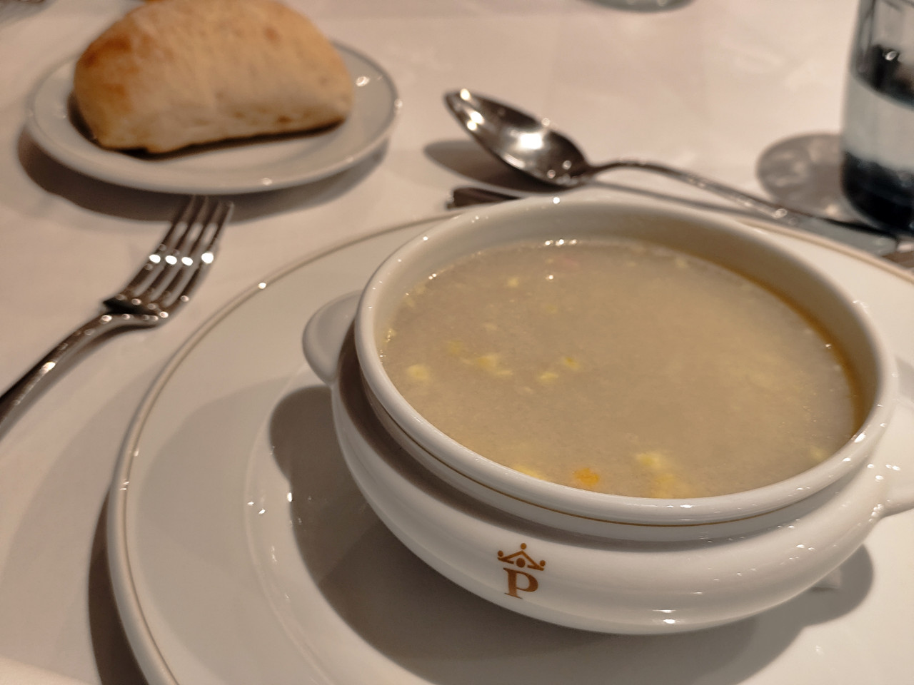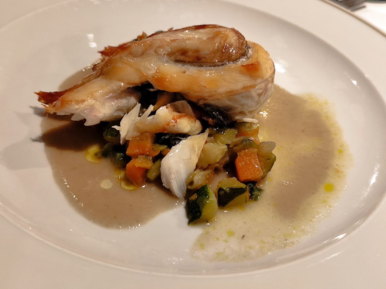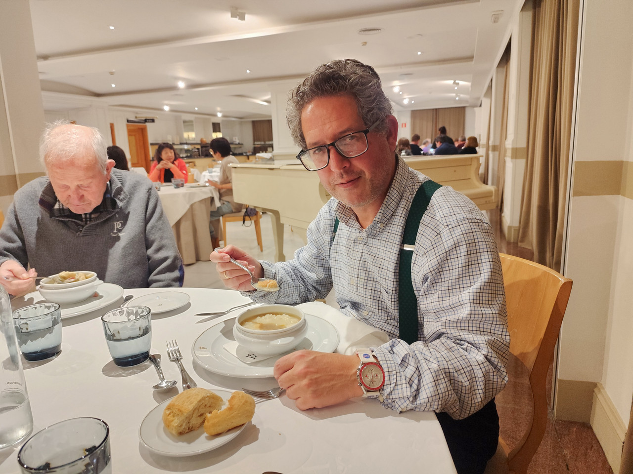 Consomé…Lubina…agua..pan..manzana o yogur y café