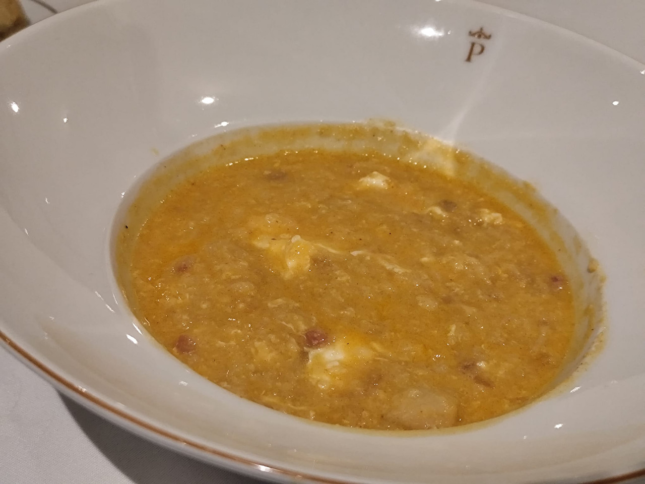 Quisquillas de Motril, jugo de gamba roja, huevas de bogavante y bacalao crujiente.