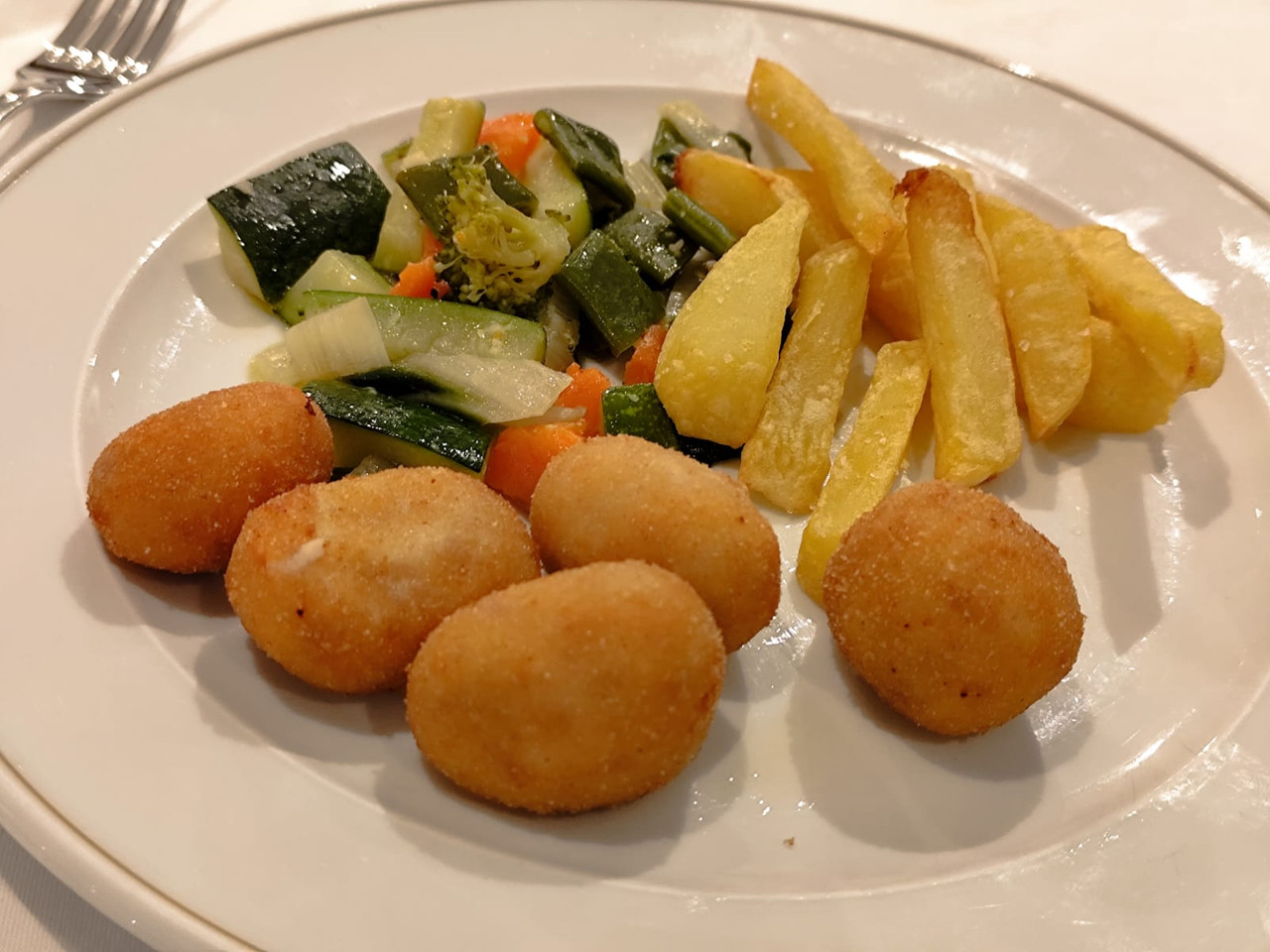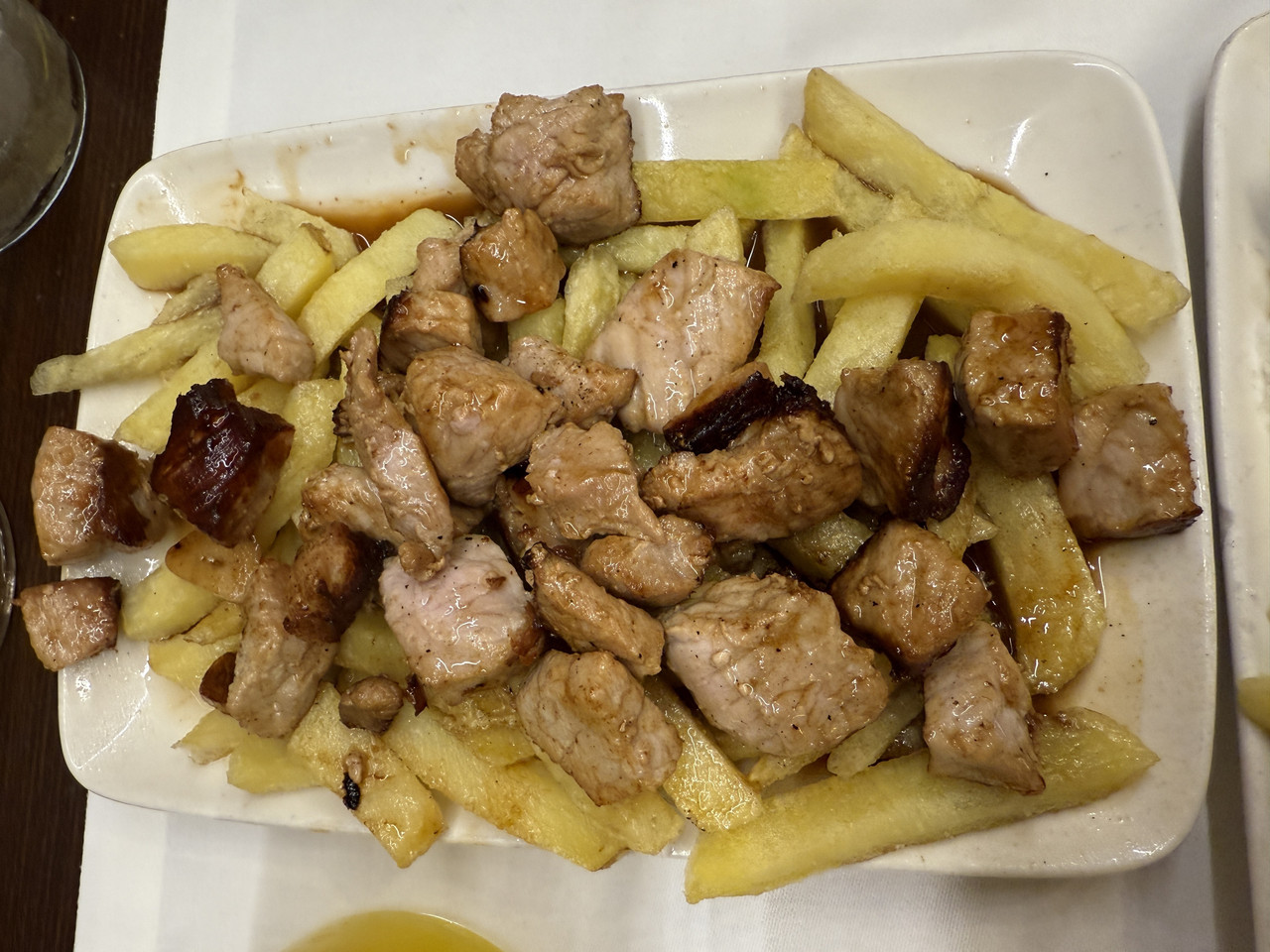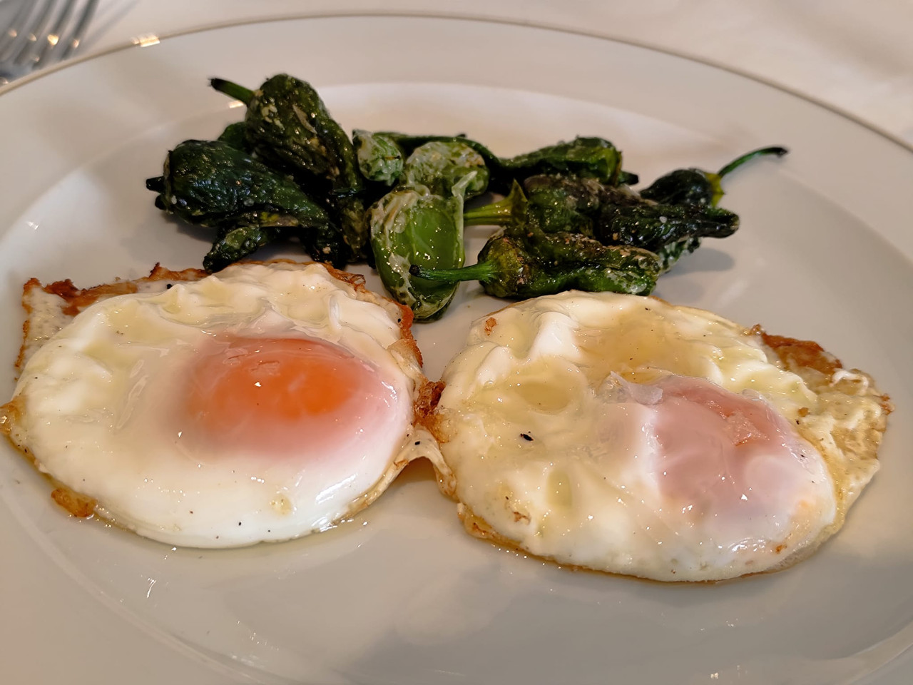 Acompañado por patatas fritas y pimientos chocolateros asados.