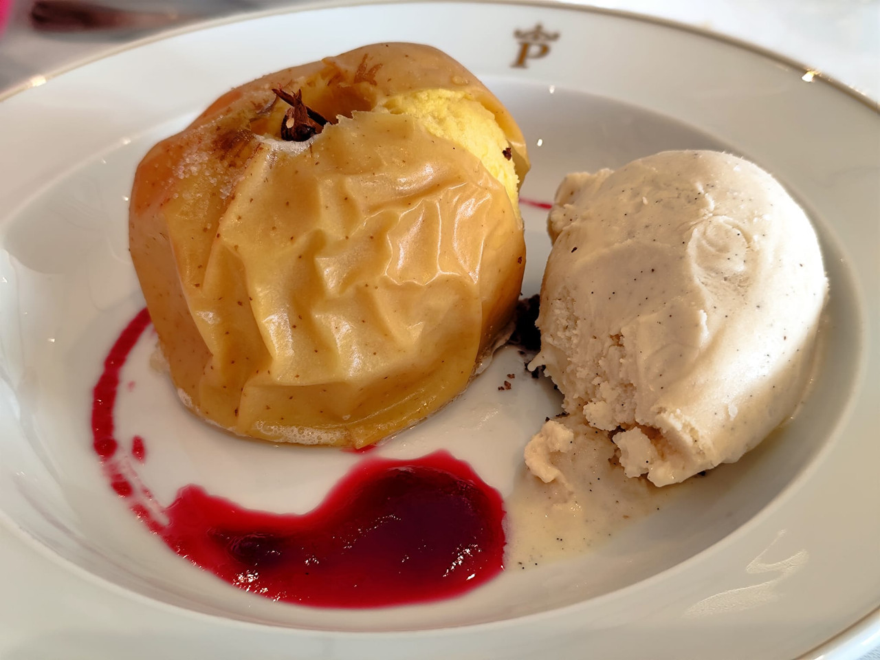 Magnum de foie gras y brioche de tête, mousse glaseado de plátano salado, vinagre agridulce y kikos. Muy sorprendente y original.