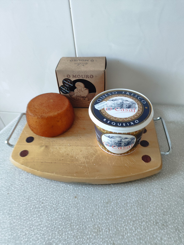 Hoy he pasado por el Carrefour de Santiago de Compostela que suele tener mucha variedad de quesos, sobre todo gallegos y me he comprado estos dos, O Mouro de Campo Lamela, es un queso elaborado con leche cruda y que una de sus caracteristicas es que se puede comer su corteza, que esta infusionada con café y canela. y el otro es un requeixo.