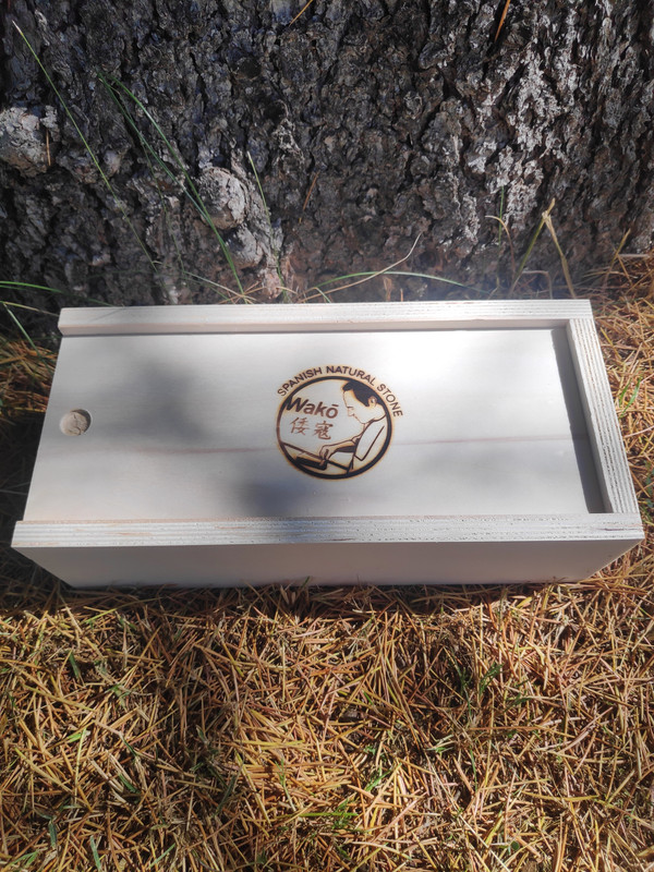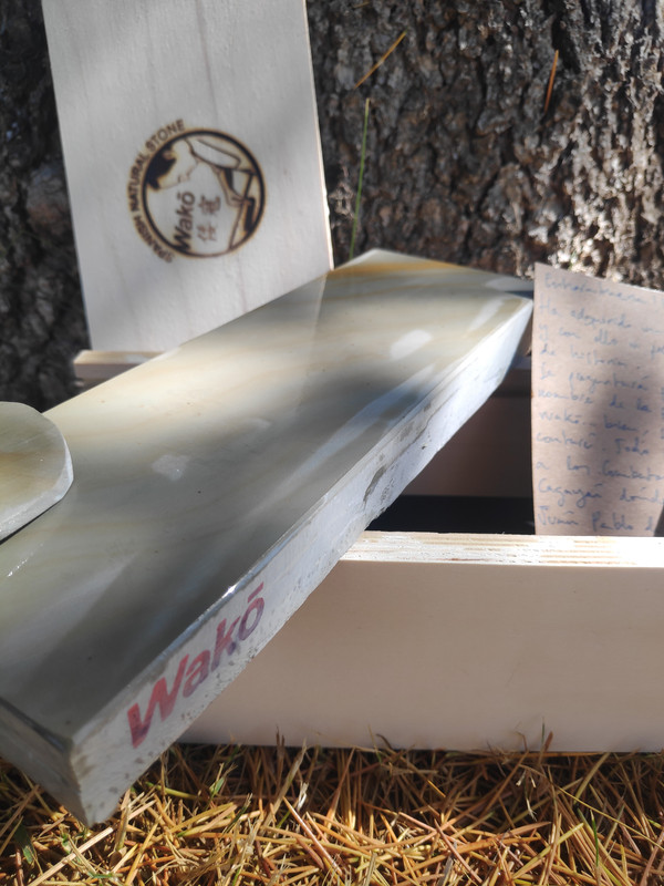 Y ahora la intermedia, dicen que tiene un grit 8000/10000 depende de a quien preguntes, donde hay unanimidad es que para cuchillos es una diablura, y si la usas antes que la wakō de finalización, hace un tándem perfecto. Las medidas no las recuerdo, pero su ancho generoso de más de 10cm la hacen perfecta para los cuchillos.
