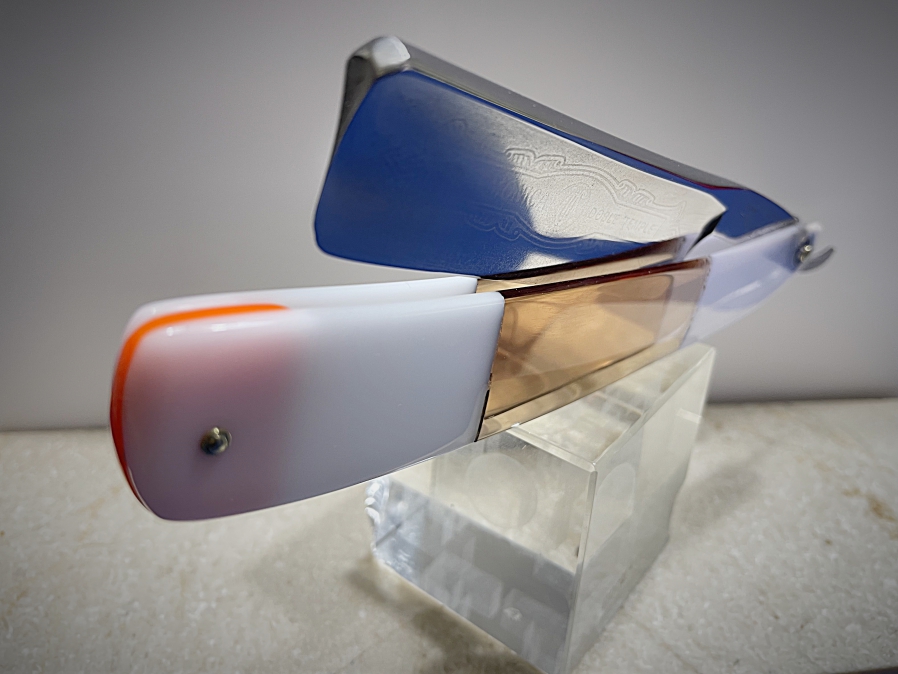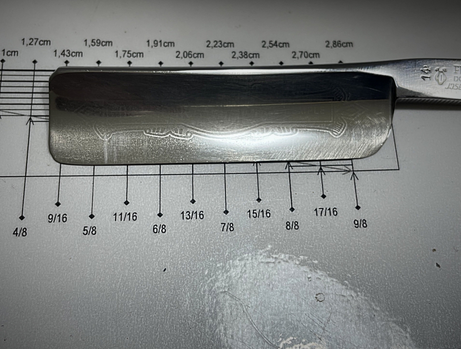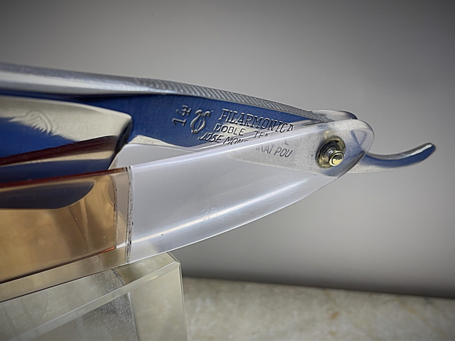 El sello original se aprecia ligeramente y el lomo está perfecto sin desgastes anormales por lo que el bisel tiene un mínimo tamaño en todo la longitud del filo.