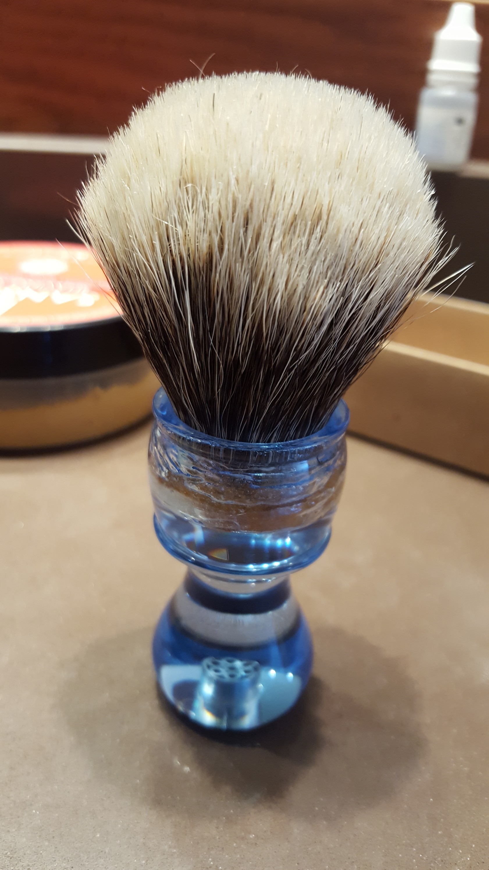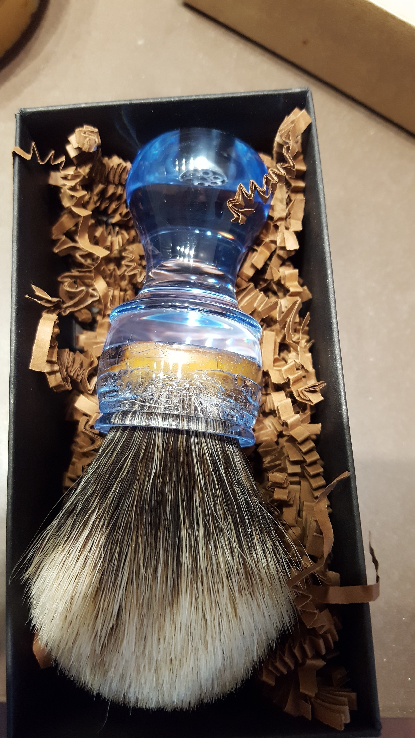 Lo dicho, vendo esta brocha que compré hace apenas quince días y que no la he estrenado. Fue un calentón y prefiero venderla sin estrenarla. Nudo manchurian.