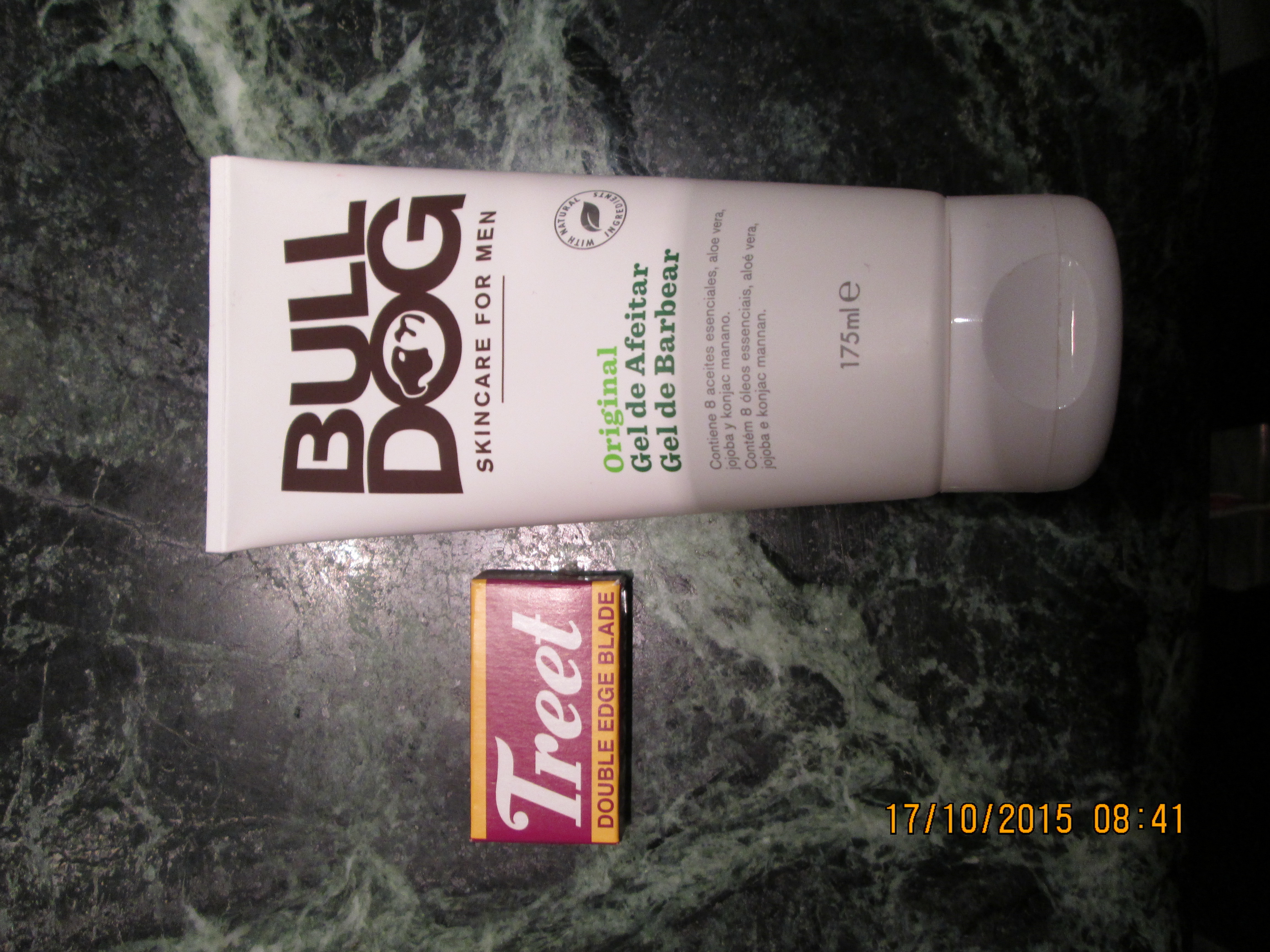 Añado de regalo un paquete de cuchillas Treet carbono y un gel de afeitar Bull dog, bueno sobre todo para perfilar patillas al ser transparente.