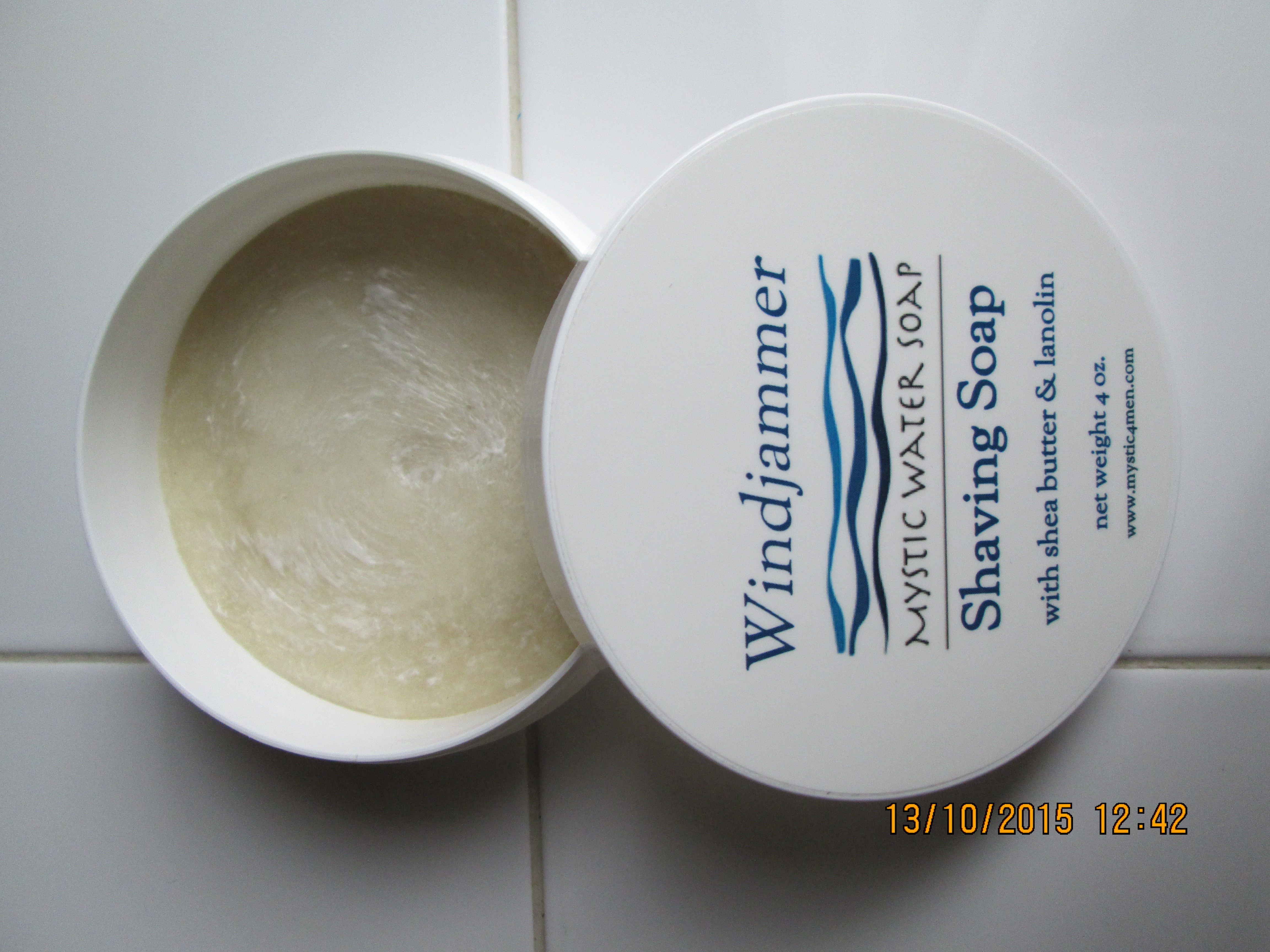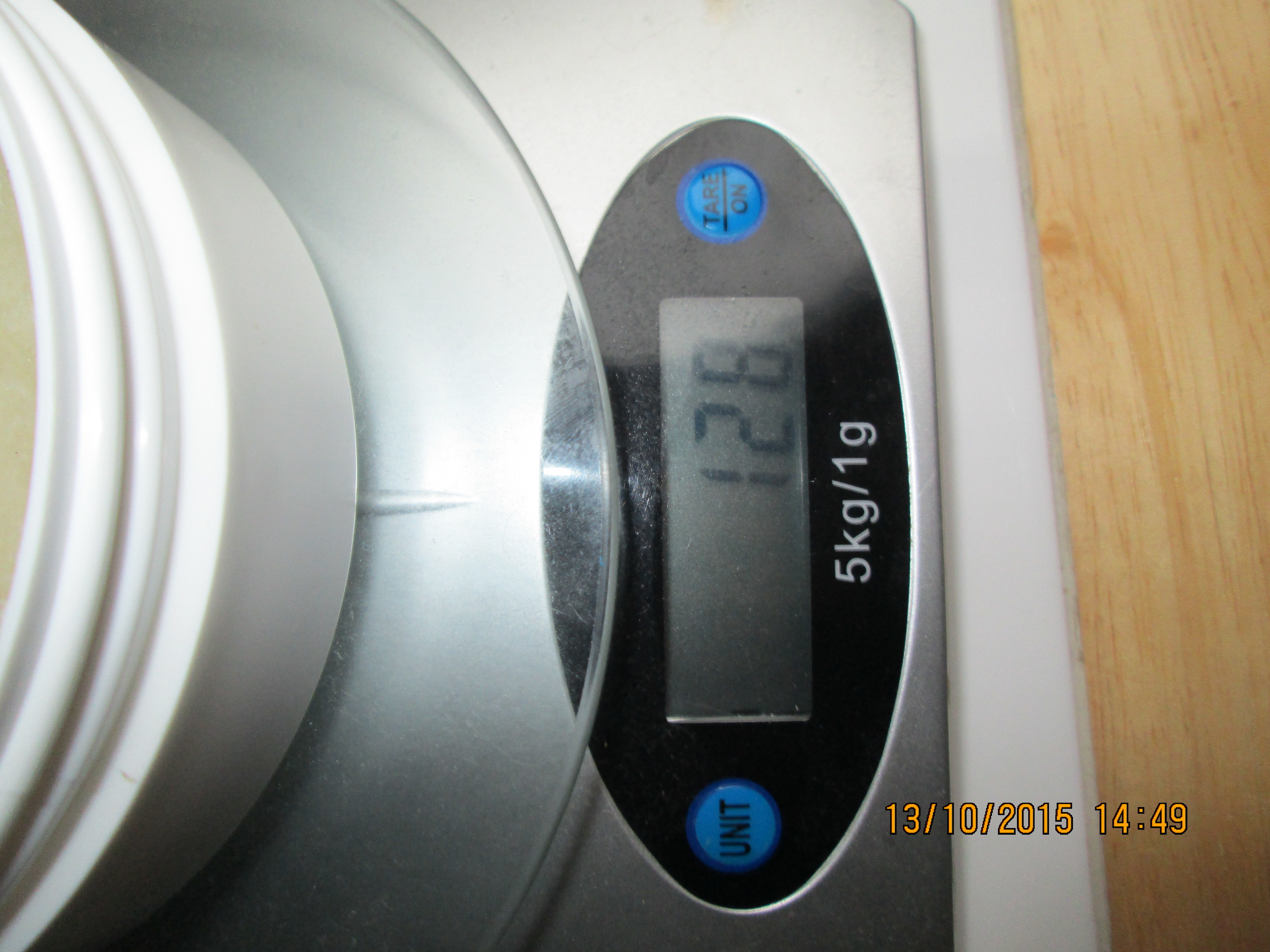 Desempolvando el libro de matemáticas del Instituto y con las medidas y el peso de la tapa, he calculado que el recipiente pesa 29 grs. Por lo tanto quedan 99 grs, de jabón, gramo arriba ó abajo.