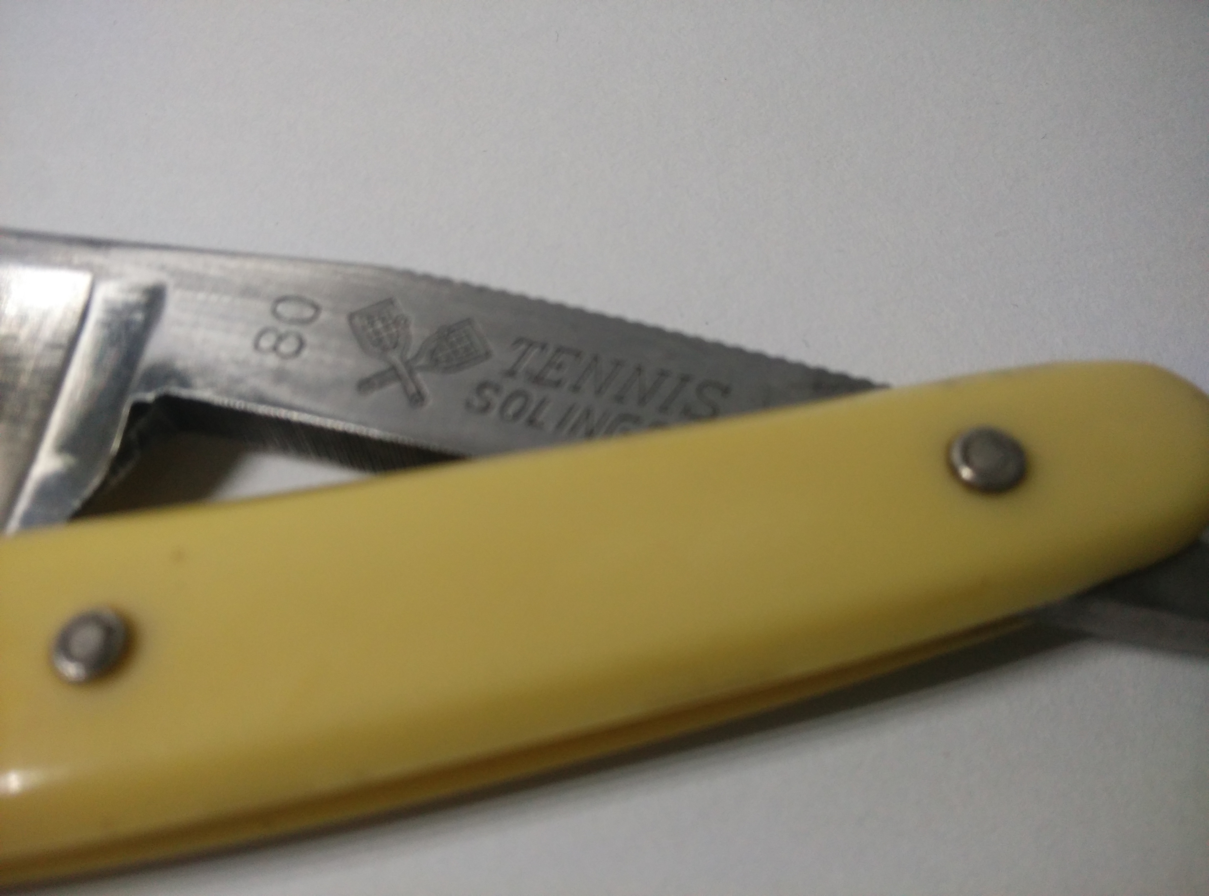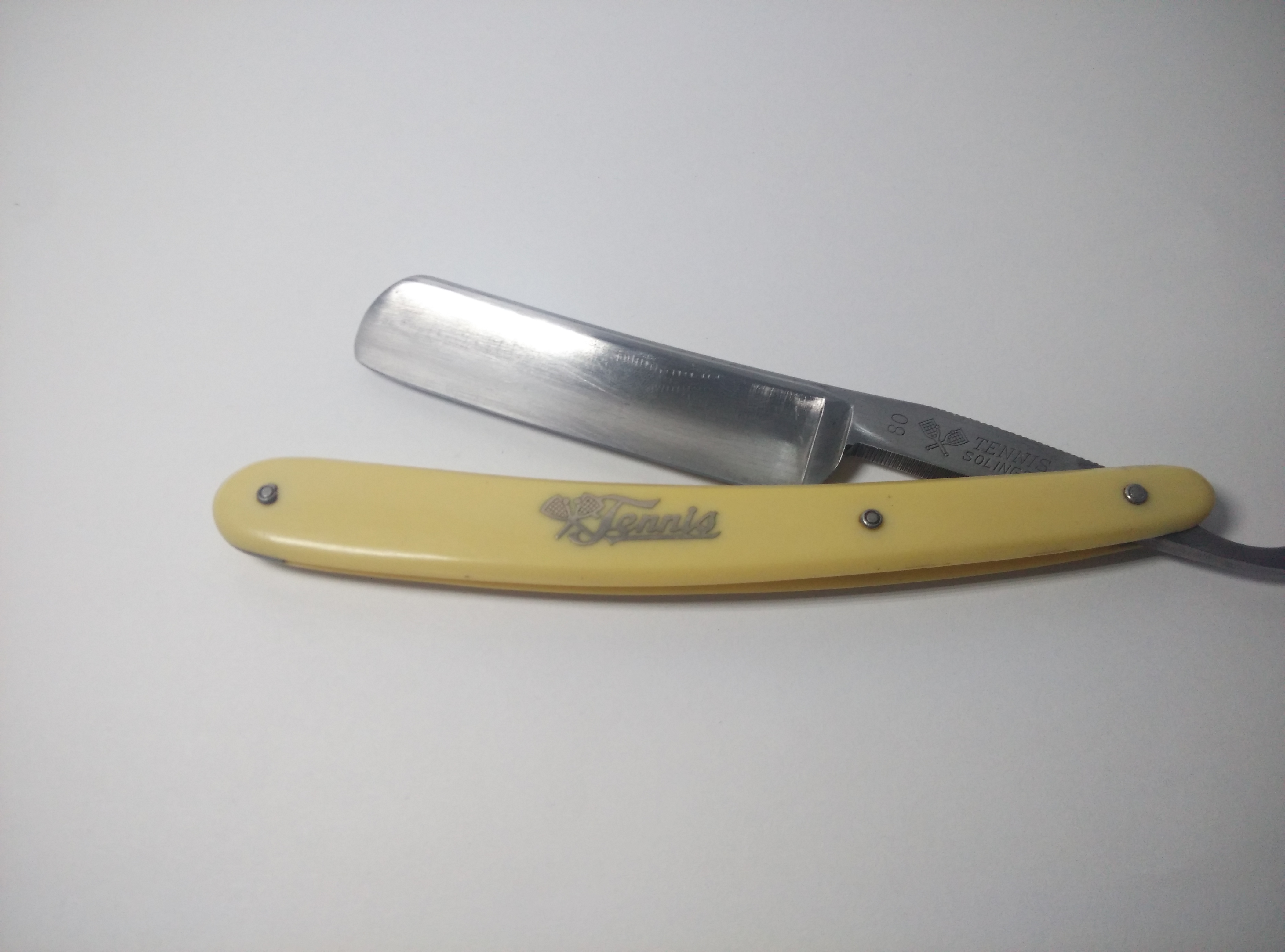 pues eso,vendo esta navaja tennis.joya datada entre 1952 y 1960 cuyo fabricante es de los mas conocidos en solingen, Bismarck y dovo eran otras de sus marcas mas conocidas y todas ellas eran de lo mejor que uno se podia echar a la cara.esta navaja es perfecta para los que empiezan pues no tiene un gran tamaño y es muy manejable,a la vez que tiene un corte excelente y retiene filo.el precio que le pongo es de 45e con envio incluido a peninsula y como siempre se envia desinfectada y afilada como un bisturi.cualquier duda aqui me teneis gracias por leer y un saludo a todos