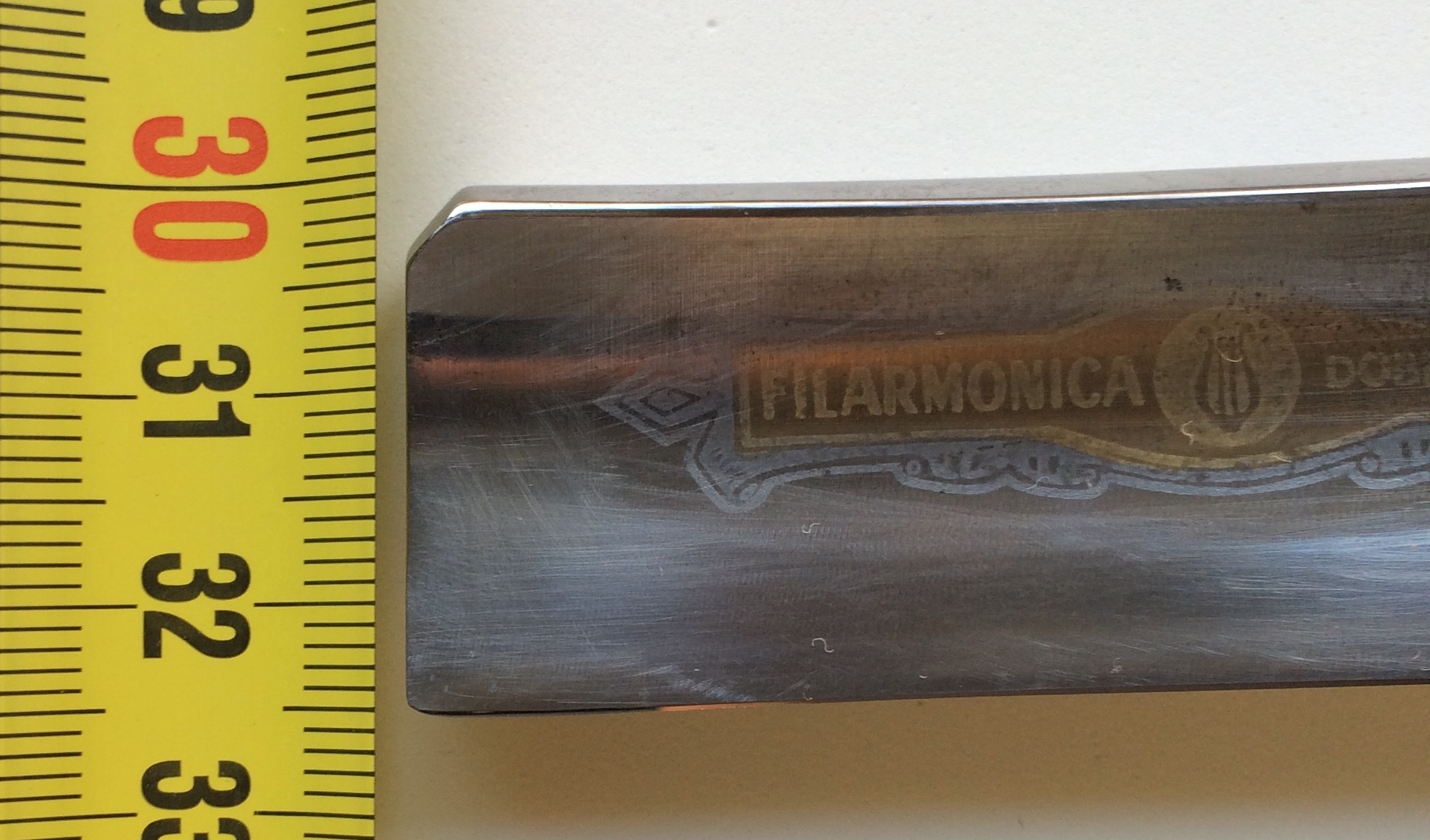Hay por ahí mucha mitólogia sobre si unas salieron buenas y otras malas. Pues bien, está es de las buenas. Tiene la hoja entera (25mm) y el sello en muy buen estado. No tiene óxido no grietas y ligerísimas marcas de carbono (casi imperceptibles). Está afilada y desinfectada. El problema para mí es que es grandísima. Precio 90€ VENDIDA