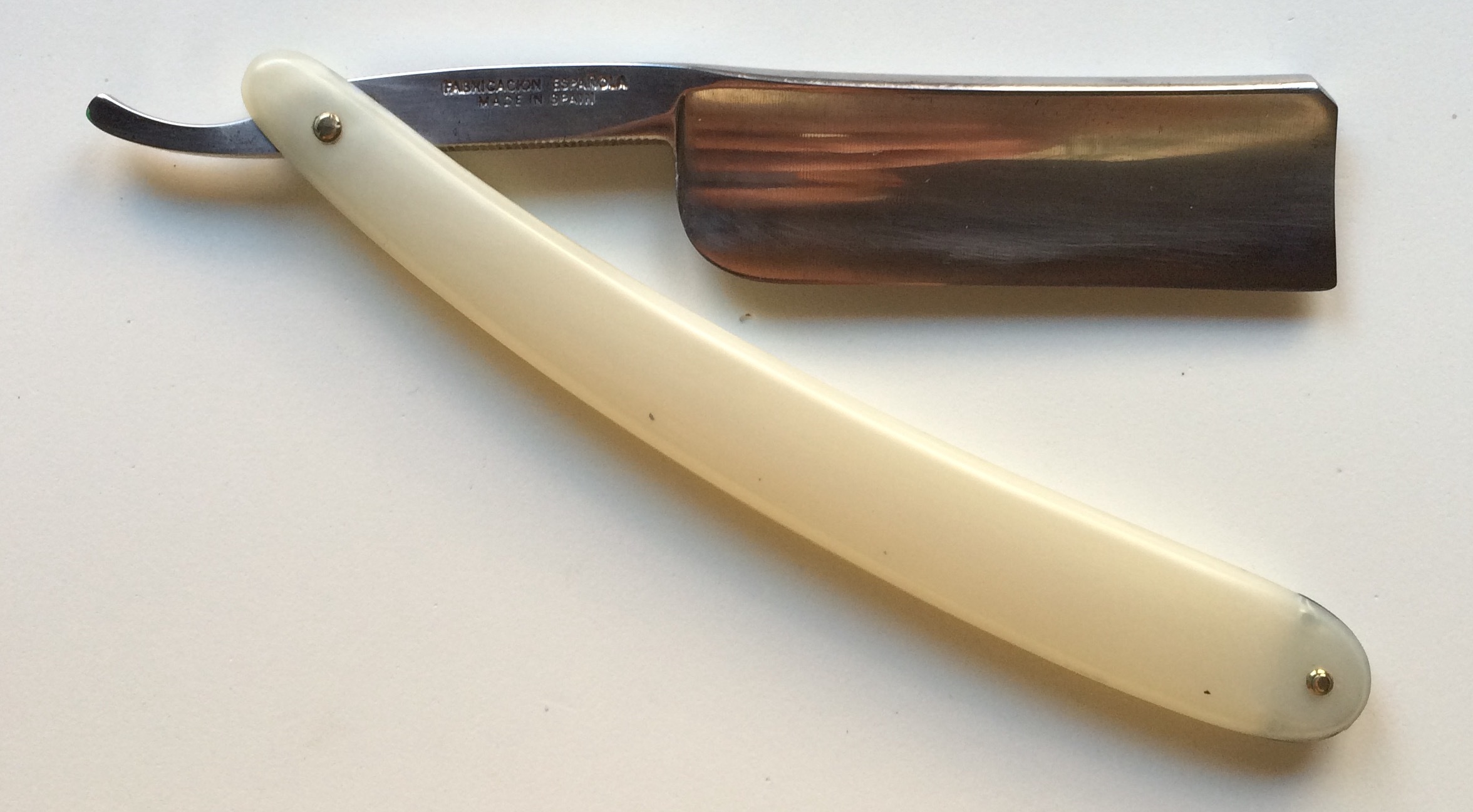 La navaja sueca es preciosa y está en un estado inmejorable.Tengo una Solingen muy parecida y afeita muy bien pero me pasa como a ti que la noto un poco pequeña.Para perfilar barbas o perillas la veo ideal.