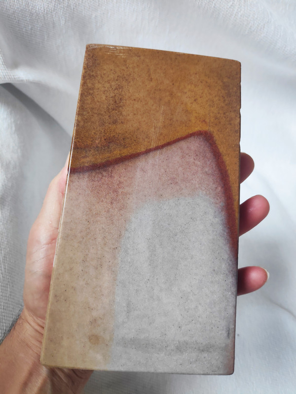 Esta es una cuarcita pura de la que @Jucave tiene su hermana. Quizá la de él vaya mejor que esta ya que su color era rosa uniforme, lo cual indica una sedimentación homogénea; pero esta era muy bonita y para mi la estética también suma.