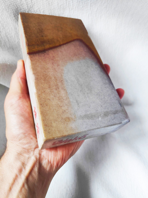 Todavía no está plana, lleva Dios y ayuda dejarla plana (¿verdad? Juan Carlos). Me lo tomo como el café, a sorbitos, pero no es tarea fácil ya que será Lv7 +++++++++ por lo menos. De finura, será una 6000 según dice el amigo, que yo de esto tampoco sé tanto como ellos. Y bonita es un rato amén de que no es lenta (aunque creo que algo menos que las wakō). Parece que el cuarzo es sedimentación amiga para el afilado.