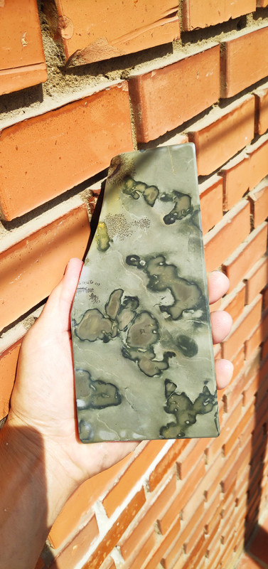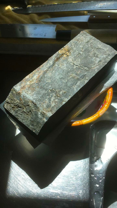 Es preciosa. La historia es que al verla pensé en una nagura, no sé porque me dio por pensar que sería blanda. El caso es que me ha rayado las piedras más duras que tengo, de ahí que decidiera hacer esta piedra. Es una awasedo bastante fina y dura, pero desconozco que tan buena sea para el afilado. Su barrillo pinta bien